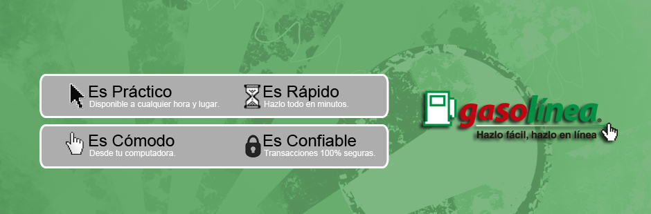 Gasolinea es un servicio confiable y serio, que tiene como finalidad poner a la disposición de nuestros clientes las ventajas que actualmente ofrecen el comercio electrónico y los medios de pagos seguros, evitando el manejo de dinero en efectivo para hacer pagos en la gasolinera. Esto, con la confiabilidad de que la información de medios de pago que el cliente proporcione solo será manejada por el banco o medio de pago que el cliente elija y con nuestro compromiso de absoluta privacidad con respecto a los datos fiscales de nuestros clientes. |